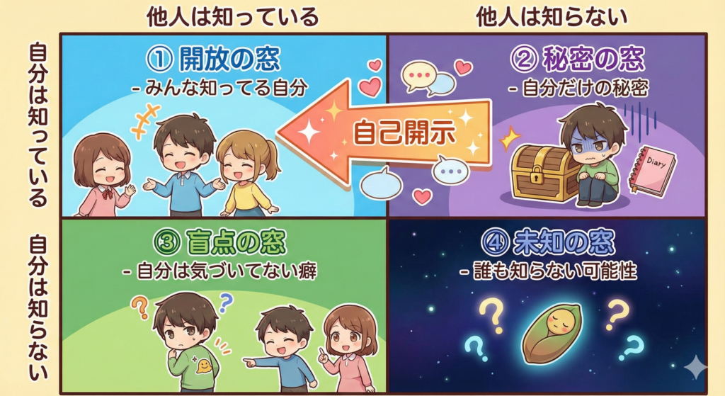 自己開示は、「秘密の窓」を開けて、「開放の窓」を広げることです。